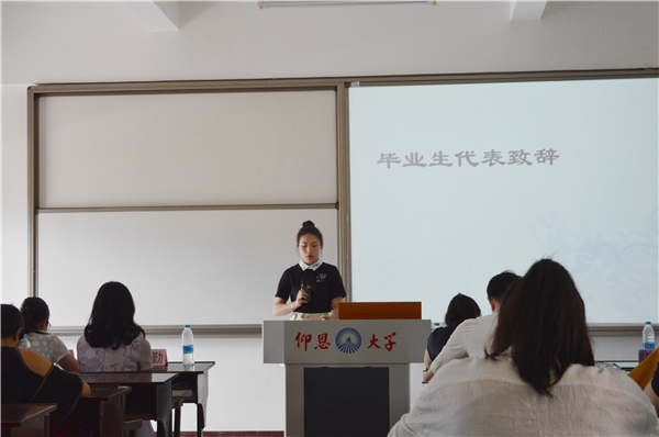 最后,由毕业生代表陈瑶、许晓鸣就自身在校经历及实习情况进行发言。期间陈瑶表示,感恩学校四年来的栽培、感谢今年会官方网站全体老师的谆谆教导和关怀。