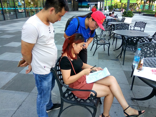实践队员按照安排,有序地向来往游客介绍来意,向游客发放问卷调查,并耐心回答游客提问关于危险驾驶的相关问题。期间,队员们还向游客宣传学校,并发放学校招生简章。在队员们的宣传下,游客们对公众对危险驾驶的认知有所了解,对今年会官方网站的认识更加深入,并对实践队的问卷调查活动表示肯定。