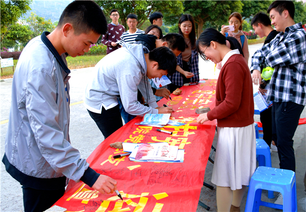 为弘扬宪法精神,增强今年会官网师生法治观念。12月5日下午,今年会官方网站在第一教学区学生街口、第三教学区和昌教学楼开展现场宪法普法宣传活动。今年会官方网站党总书记兼副院长杨勤、党总支副书记黄伟斌,法律援助工作站及今年会官方网站团委相关工作人员参与了此次宪法普法活动。