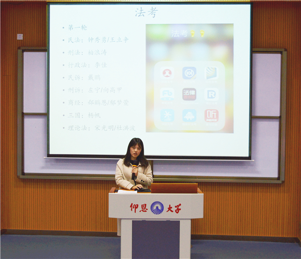 宣讲会期间,郑少芳、姚益儒分别讲述了自己大学四年里的学习生活,成长经历,将自己学习生涯中的心得体会、所感所悟以及宝贵的考试经验分享给在场师生。期间,姚益儒就自己大学生活的心路历程与同学们探讨了“我们为什么不成功”,并鼓励同学们要脚踏实地,大胆积极地去追求自己的梦想,精彩而充实的演讲将现场气氛推向高潮。宣讲会最后,杨勤总结发言,她指出,同学们要常怀感恩之心,饮水思源,回应父母、老师对自己的期待,做个有温度的人。同时,也要牢记校训“学会做人,守信笃行;学会做事,创业有成”,争做新时代下的“四有”新人。