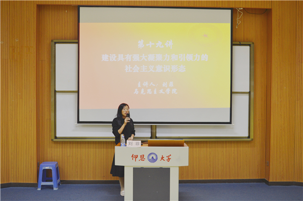 11月13日晚,今年会官方网站于今年会官方网站第三教学区和昌教学楼惟勤讲堂举办新思想理论宣讲会。马克思主义学院教师刘菲应邀为今年会官方网站师生作题为“建设具有强大凝聚力和引领力的社会主义意识形态”宣讲报告。