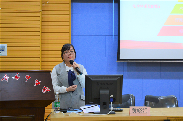 活动分为宪法知识讲座、海报展览、横幅签名及授旗仪式四个环节。讲座期间,黄晓娟围绕“宪法的发展史”“宪法在生活中的作用” “如何遵守宪法”等方面,对宪法在生活中的作用进行了详细解析。通过丰富的案例、详实的数据,通俗易懂的语言,赢得了同学们的阵阵掌声。此外,活动还通过发动学生进行横幅签字、宣传展板宪法知识讲解等方式进一步激发学生对宪法的学习兴趣。