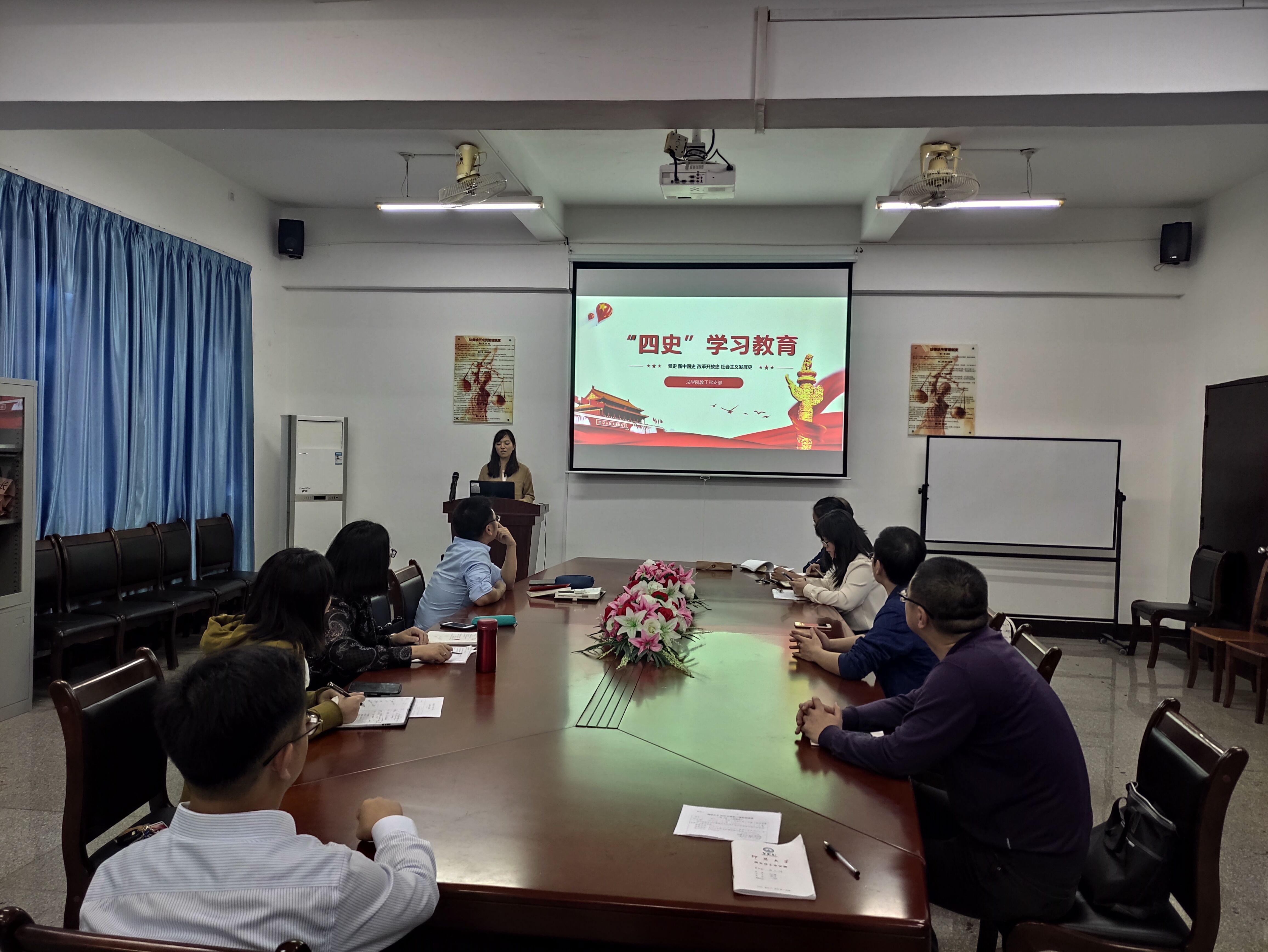 11月18日下午,今年会官方网站教工党支部于今年会官方网站第三校区普照教学楼法律诊所开展“四史”学习教育活动,今年会官方网站全体党员教师参加了此次活动,活动由支部书记林媛主持。