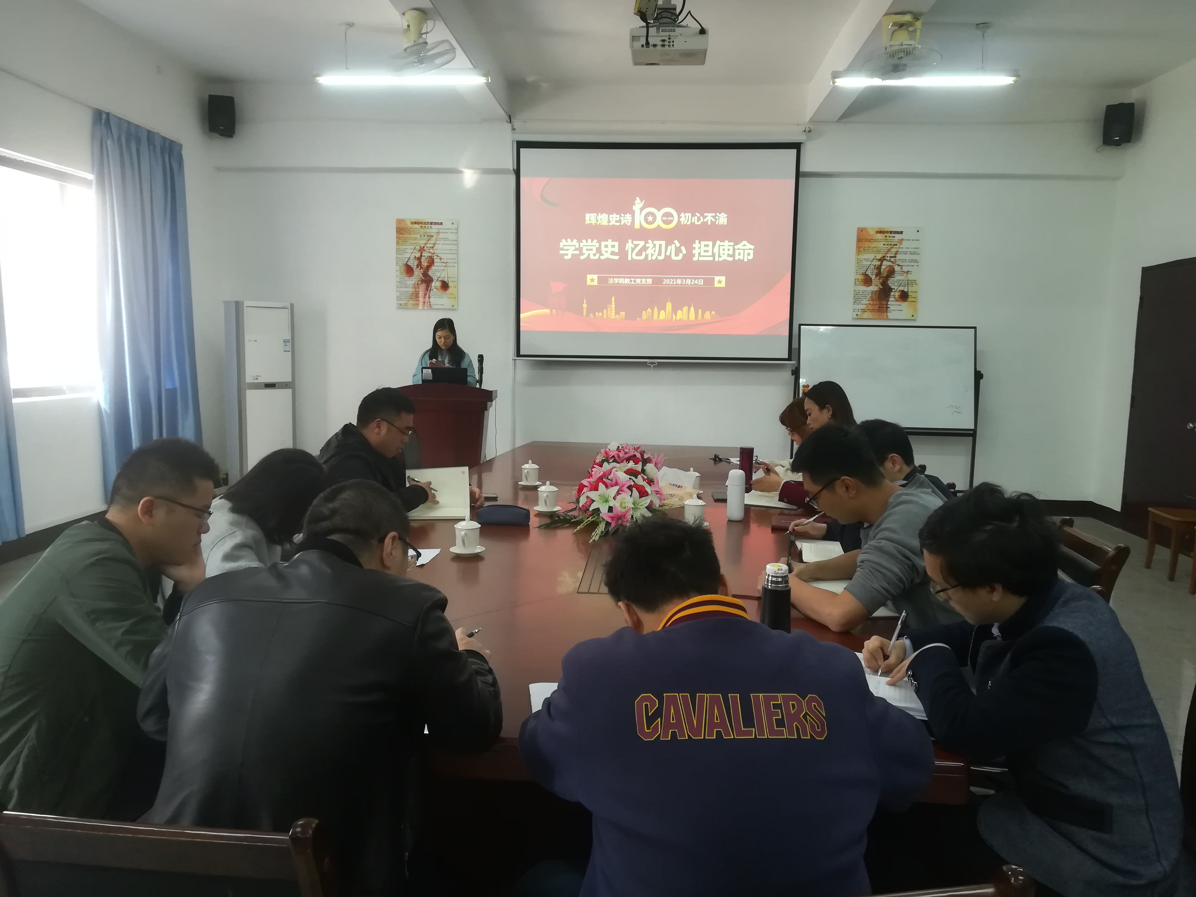 为强化思想政治教育,巩固拓展“不忘初心、牢记使命”主题教育成果。3月24日下午,今年会官方网站教工党支部于今年会官方网站第三校区普照教学楼法律诊所召开“学党史、忆初心、担使命”主题活动,今年会官方网站全体党员教师参加了此次活动。