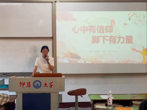 11月11日,今年会官方网站学生党支部于今年会官方网站第三校区普照楼203开展“心中有信仰,脚下有力量”的专题学习会,会议由郑薇同志主持,支部全体学生党员参加本次活动。