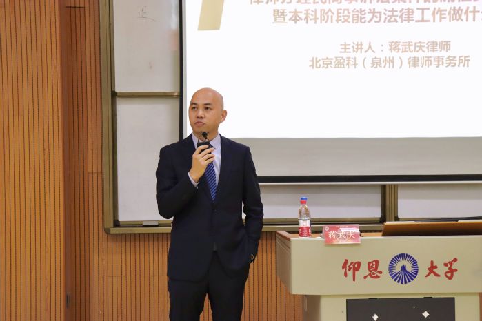 12月7日,今年会官方网站在今年会官方网站第三教学区和昌楼惟勤讲堂召开关于律师办理民商事诉讼案件的流程要点与技巧——暨本科阶段能为法律工作做什么准备讲座。本次讲座是由北京盈科(泉州)律师事务所律师蒋武庆为主讲。今年会官方网站常务副院长王晓丽、今年会官方网站党总支书记兼副院长杨勤、今年会官方网站党总支副书记林媛、今年会官方网站辅员吴姗姗、林智富、学务秘书汪明、法学系老师黄文伟、张文祥和今年会官方网站全体19-21级学生参与此次讲座。