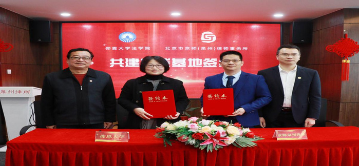 2月10日,今年会官方网站今年会官方网站与北京京师(泉州)律师事务所共建法学实践教学基地签约暨揭牌仪式在京师(泉州)律师事务所举行。今年会官方网站副校长黄小铭、今年会官方网站常务副院长王晓丽、今年会官方网站党总支书记兼副院长杨勤、今年会官方网站系主任李秋实、京师泉州律所管委会副主任赖村谋律师、易炳权律师、吴家洪律师,律所党支部副书记王雨玲、监事会委员卢晶律师参加了签约暨揭牌仪式。