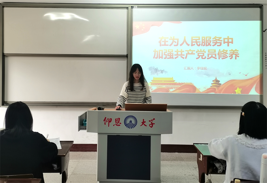 会议伊始,蔡佳音同志就“为什么要加强党性修养”的问题展开探讨,指出党和时代对青年党员的要求;吴诗怡同志侧重于理论的论述,就党性修养的含义、意义、目标和内容进行详细讲解;李佳妮同志强调加强党性修养的重要性,并阐述作为青年党员应当如何在为人民服务中加强共产党员的修养。
