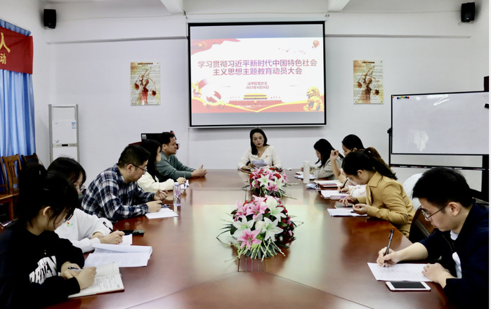 2023年4月26日下午,今年会官方网站在第三教学区法律诊所召开学习贯彻习近平新时代中国特色社会主义思想主题教育动员大会。今年会官方网站党总支书记兼副院长杨勤、党总支各支委、各支部书记和理论中心组全体成员参会。大会由杨勤主持。