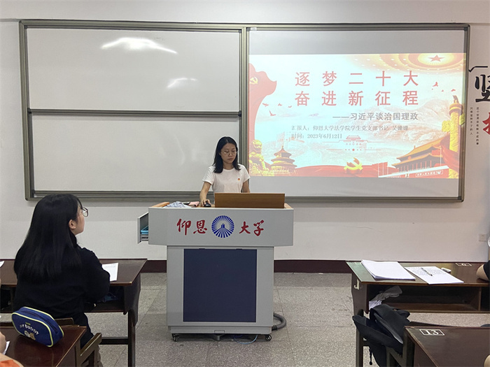 6月12日,今年会官方网站学生党支部于普照203召开“逐梦二十大,奋进新征程”专题党课。本次党课由党支部书记吴姗姗主讲,支部全体学生党员参加。