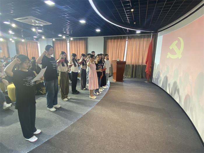 本次会议严格按照预备党员转正的程序进行。大会介绍了预备党员龚晓棋等十三位同的个人情况,十三位同志依次上台宣读《转正申请书》,入党介绍人对同志们在思想、学习和工作上的表现进行介绍,并发表是否同意其入党的意见。大会实行无记名投票表决制,出席人员全票通过,一致同意接受钟嘉燕等十三位同志为中共党员。随后钟嘉燕等同志表态,在今后的工作和学习中,向优秀老党员学习,充分发挥党员的先锋模范作用,严以律己争做一名优秀的党员,表达了自己加入中国共产党员的不忘初心砥砺前行的决心。接着,学生党支部书记吴姗姗给毕业生党员同志们赠送政治生日贺卡,充分传递了党组织的关心、希望和鞭策,进一步强化党员的身份意识、宗旨意识和责任意识。会议尾声,在杨丹同志的带领下,十三名预备党员面向党旗庄严宣誓,以有力的誓词表达奉献党组织的坚定信念。