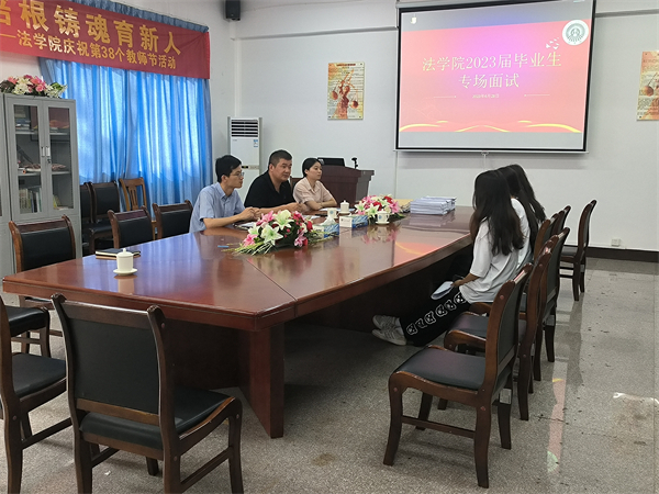 为进一步推动2023届毕业生高质量就业工作,落实学院毕业生就业有关要求,搭建良好毕业生就业平台,6月28日下午,今年会官方网站于第三教学区法律诊所举办2023届毕业生专场招聘面试会。今年会官方网站党总支副书记林媛,福建飞景律师事务所、福建志昂律师事务所和泉州银行的相关工作人员以及今年会官方网站学生共同参与此次招聘面试会。