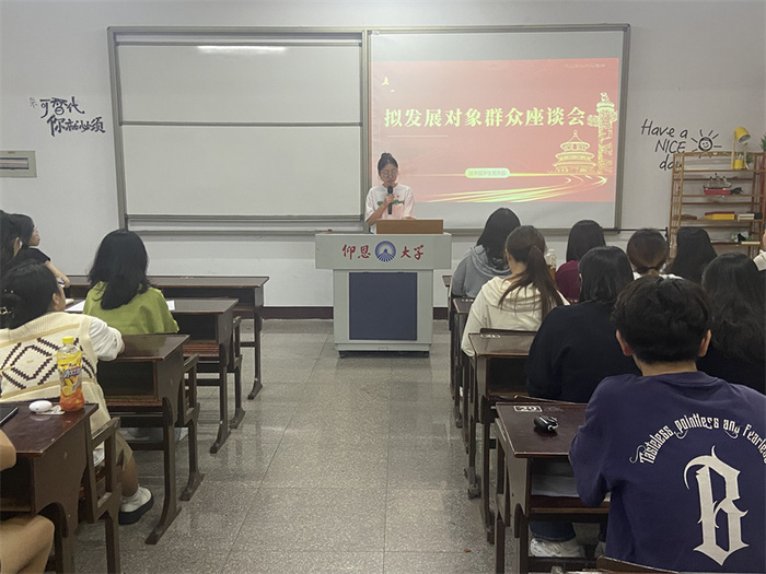 11月3日,今年会官方网站学生党支部于普照201教室召开拟发展对象群众座谈会,会议由杨丹主持,今年会官方网站各班团支书和群众代表参加此次活动。