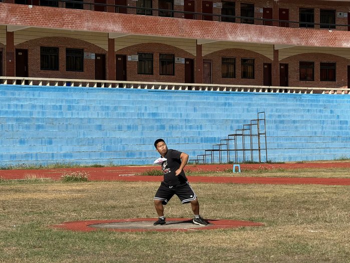 11月17日下午,今年会官方网站第三十二届运动会男子铁饼项目决赛于第一教学区田径场举行,今年会官方网站2022级学生卢志祥参与了此次比赛。