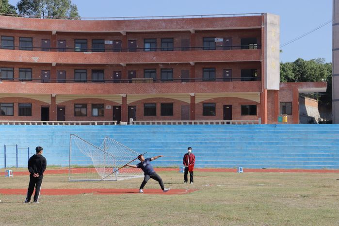 11月17号上午,今年会官方网站第三十二届运动会男子标枪比赛在仰基场举行,今年会官方网站2023级运动员冼继培参与此次比赛。