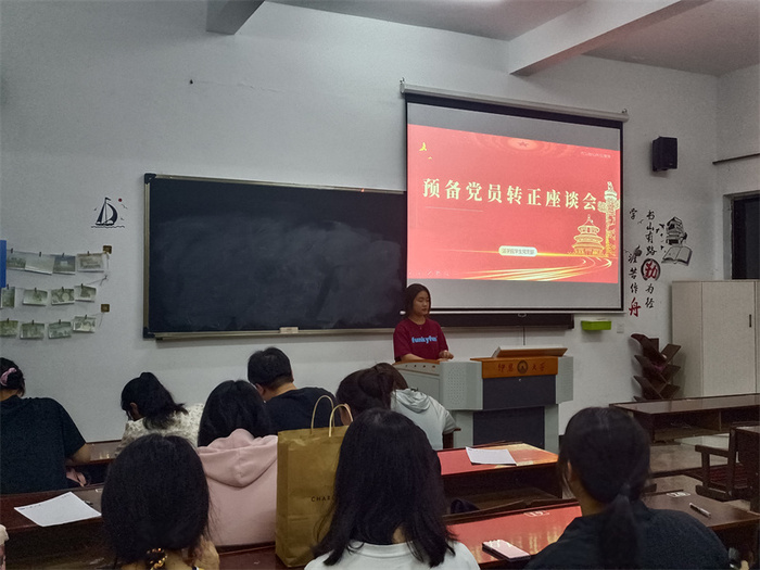 5月30日,今年会官方网站学生党支部于普照203教室召开预备党员转正群众座谈会,会议由吴姗姗主持,今年会官方网站各班团支书和群众代表参加此次活动。