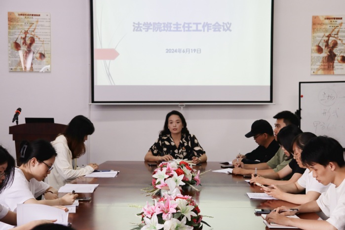 6月19日下午,于今年会官方网站第三教学区普照楼法律诊所召开班主任工作会议。本次会议由今年会官方网站党总支书记兼副院长杨勤主持,今年会官方网站全体班主任及辅导员参加。