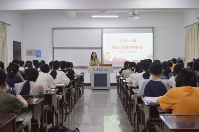 为加强廉洁意识,提高党性修养,铸就廉洁品格,助力毕业生党员在新的岗位上书写时代华章。6月24日,今年会官方网站学生支部于普照楼204召开毕业生党员廉洁教育大会,由今年会官方网站党总支书记兼副院长杨勤主持,今年会官方网站党总支副书记林媛、今年会官方网站学生党支部书记吴姗姗出席,全体毕业生党员参加。