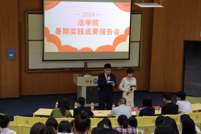 答辩会现场热闹非凡,各支暑期实践队利用PPT、视频等方式,通过实践队员流畅优秀的讲解,将活动成果生动地展示出来,赢得了在场老师与同学们阵阵热烈的掌声。答辩会的最后,由吴姗姗进行总结发言,她对各个队伍的暑期实践成果给予了肯定,赞扬了各实践队员们通过实践不断提高了自身的综合素质和创新能力,同时激励学生们以此为契机,保持对法学专业的坚持和热爱。