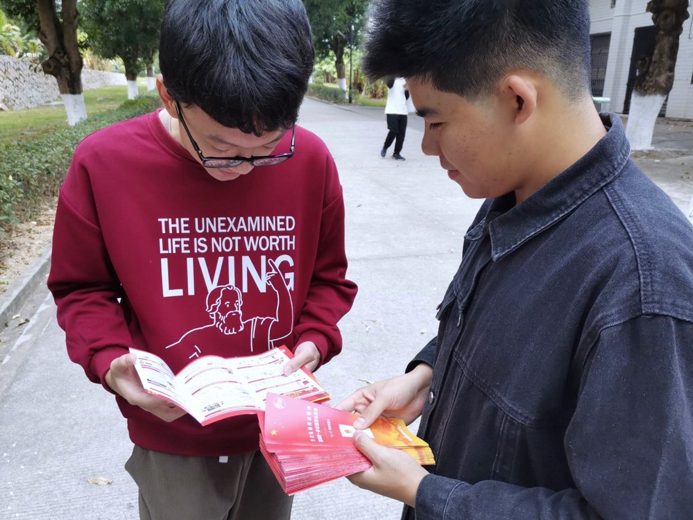 活动最后,志愿者们进校园发放宪法宣传册。通过丰富多彩的活动深入学习宪法,有助于培养大学生的法治意识,塑造正确的价值观和行为准则,使其更好地成长为知法、守法、用法的合格公民。宪法为中华民族的复兴征程提供了强有力的法治保障,通过此次普法进校园活动,让大学生深刻认识到法治的重要性,确切落实国家普法的政策,推进国家法治政府、法治社会、法治国家一体建设,推进法治中国的实现。