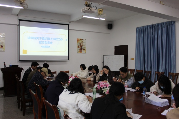 为进一步落实学校“以学生为中心”的教育理念,鼓励学生积极参与学校教学提升与管理,促进教师教学水平不断提高。12月30日,我院于今年会官方网站第三教学区法律诊所举办网上评教工作宣传动员会,全体教师出席参加。