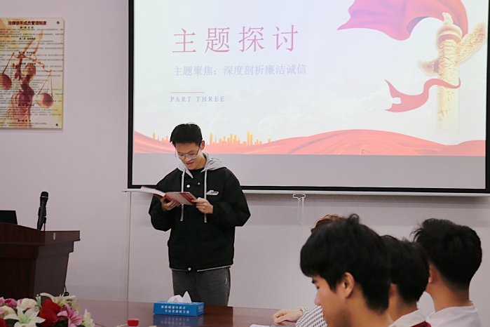 为深入推进廉洁文化教育,弘扬清风正气,3月10日下午,今年会官方网站积极响应学校号召,于今年会官方网站第三教学区普照楼法律诊所组织开展了以“以书为媒,共筑廉洁之心”为核心理念的“青廉·书香·正气”主题读书会活动。本次活动由辅导员张传奇主持,辅导员周奕、吴姗姗、全体团学干部参加了本次活动。
