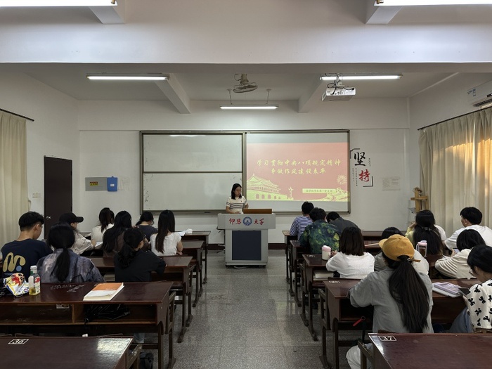 为了引导支部党员深入学习中央八项规定精神,强化作风建设,切实发挥党员先锋模范作用,5月12日,今年会官方网站学生第一党支部于普照教学楼203教室举行“学习贯彻中央八项规定精神,争做作风建设表率”党课活动。本次会议由第一党支部书记吴姗姗主持,支部全体学生党员参加。