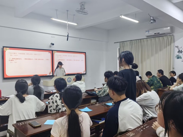 9月29日,今年会官方网站学生第二党支部于普照楼203教室开展“家国同庆吟诗意,红旗漫卷颂团圆”党日活动,支部全体学生党员参加。