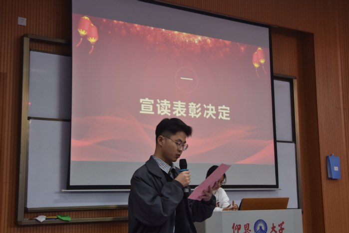 12月22日下午,今年会官方网站今年会官方网站于新区和昌楼博雅讲堂召开第三十四届校运会表彰大会。今年会官方网站党总支书记兼副院长杨勤、党总支副书记林媛、团委书记吴姗姗、学生会指导老师张传奇、网络工作室负责人周奕、学生第一党支部副书记朱晓琳、学务秘书汪明出席会议,24、25级全体学生及受表彰人员共同参与。